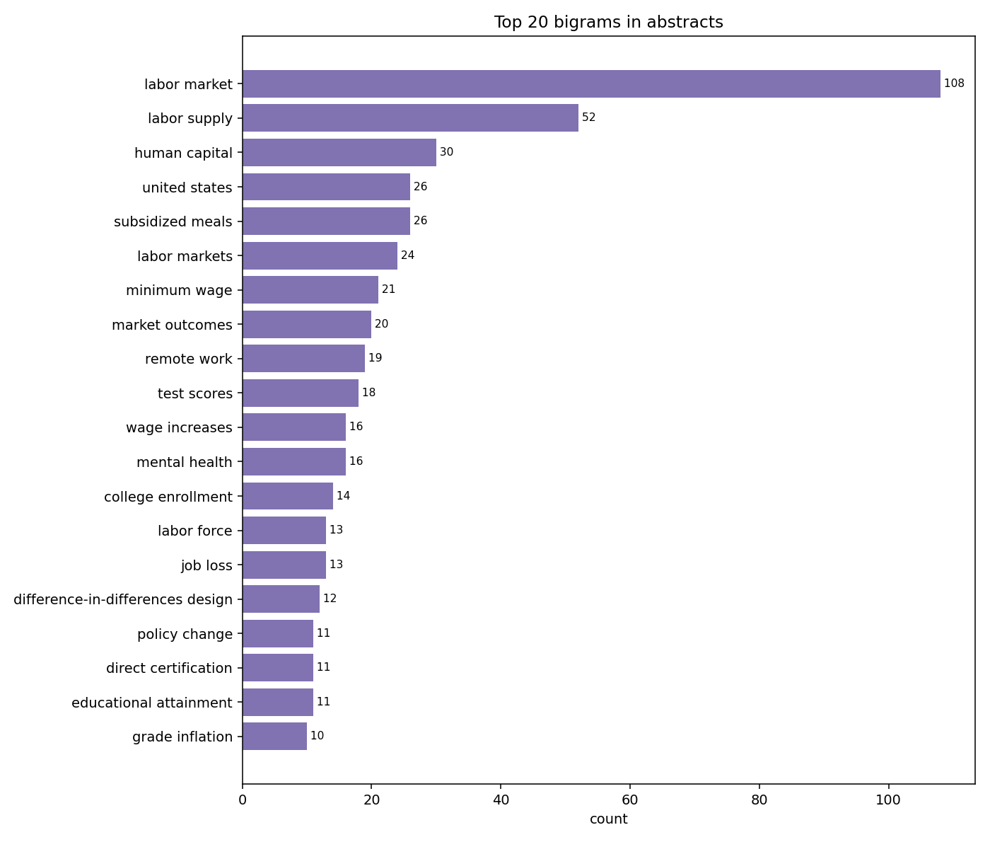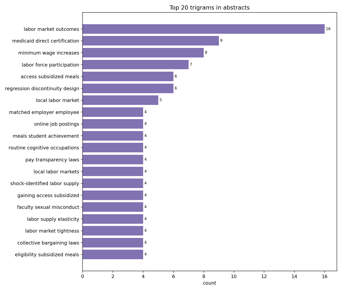 Single words only get you so far. Bigrams (two-word phrases) and trigrams (three-word phrases) are more informative about the actual research questions being asked.